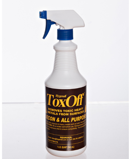 The Hygenall® ToxOff™ Surface Cleaner is a wipe-on / wipe-off, non-rinse formula engineered for decontaminating hard, non-porous surfaces. It’s designed to remove soot, heavy metals, and other fireground contaminants safely and effectively — ideal for apparatus, rehab zones, tools, hoods, and PPE surfaces. This product is sold in a case of 12 × 1-quart spray bottles.