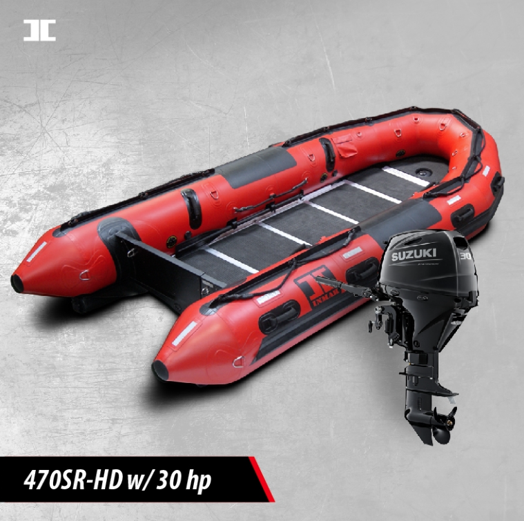 The INMAR 470 in its HD / SR-HD configuration is a premium, mission-ready inflatable boat designed for fire, rescue, dive, and patrol applications. With a rigid aluminum floor, large payload capacity, and robust construction, it provides a confident working platform in challenging water conditions.