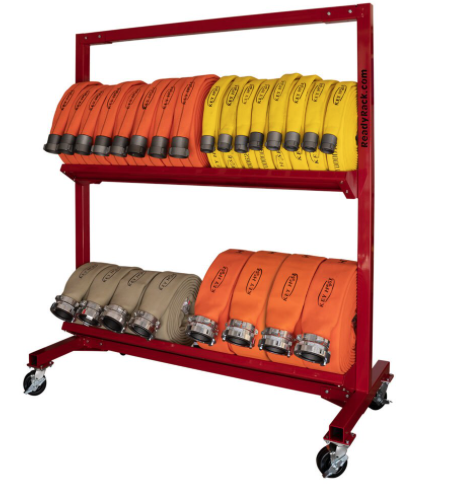 The Ready Rack Mobile Hose Cart is a durable and efficient solution for transporting and storing fire hoses. Designed to minimize back strain and improve workflow, this cart is available in multiple configurations to suit various departmental needs.
