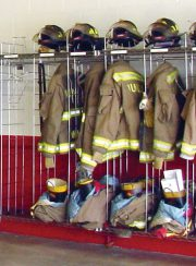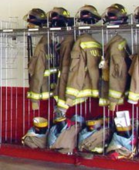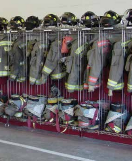 The New-Tech Wall Mounted Ready Rack offers a classic chrome solution for fire stations to store their turnout gear efficiently.