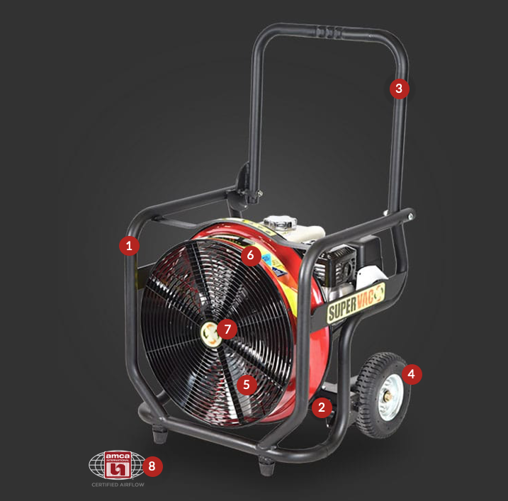 The foot-activated seven-position tilt frame enables angles from downward blasts to upward ventilation—perfect for navigating stairs or gaps.Easy Handling & Transport