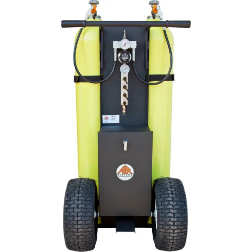 Designed for mobility, versatility, and durability, the BAT-2B from Air Systems International is a two-cylinder Breathing Air Transporter™ that delivers dependable Grade-D breathing air wherever it's needed. Ideal for emergency response, confined space entry, and industrial applications, this mobile air cart accommodates two large high-pressure cylinders (up to 5000 psi) and includes a 4-outlet breathing air manifold for multi-user support.