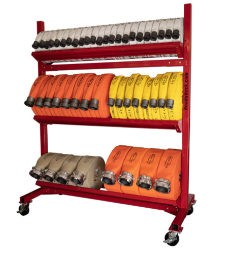 The Ready Rack Mobile Hose Cart is a durable and efficient solution for transporting and storing fire hoses. Designed to minimize back strain and improve workflow, this cart is available in multiple configurations to suit various departmental needs.